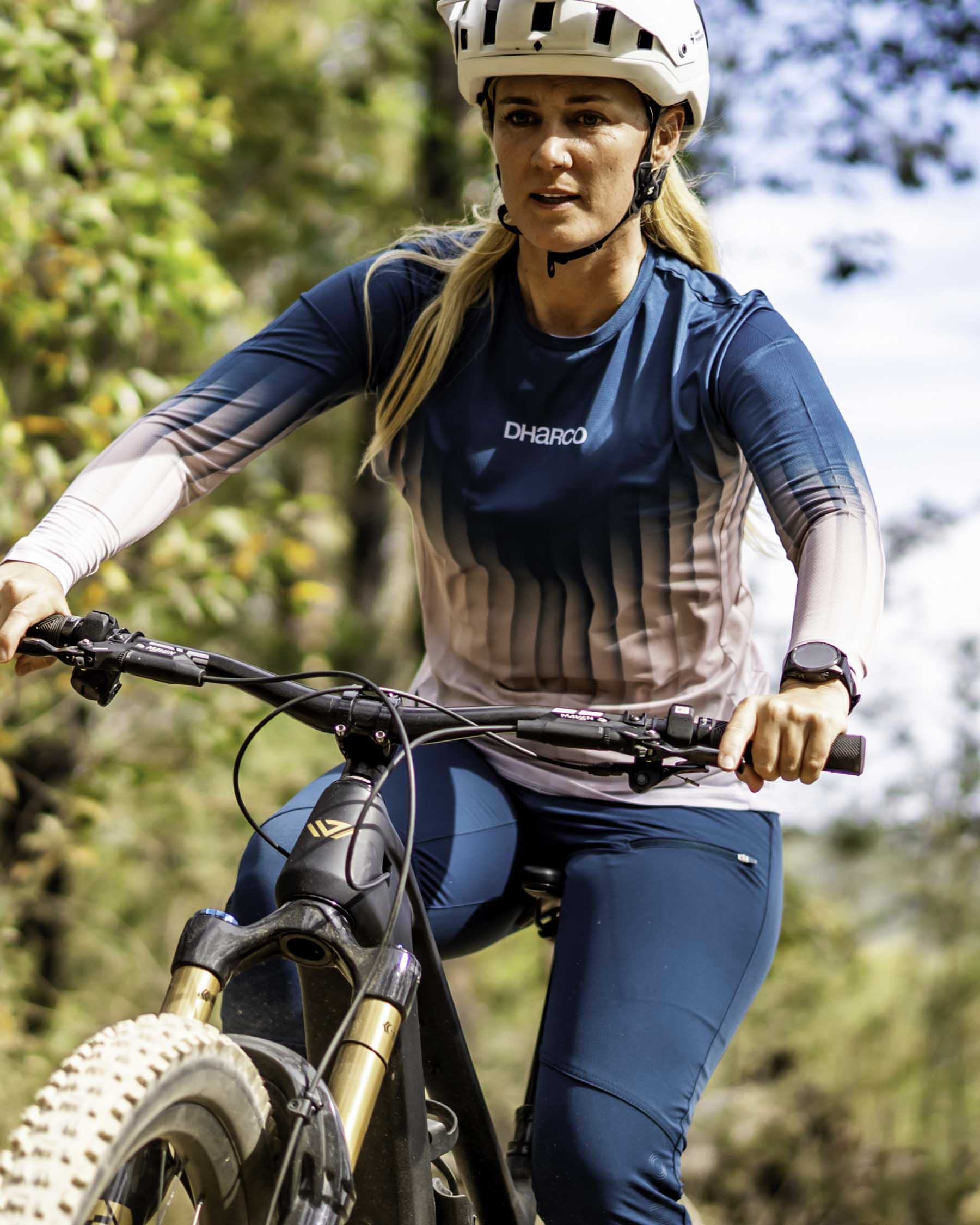 Le maillot DHARCO RACE femme est conçu pour les rideuses qui aiment repousser leurs limites, avec style et détermination. Son design reflète ta passion pour le VTT et t’encourage à affronter chaque ligne avec assurance.