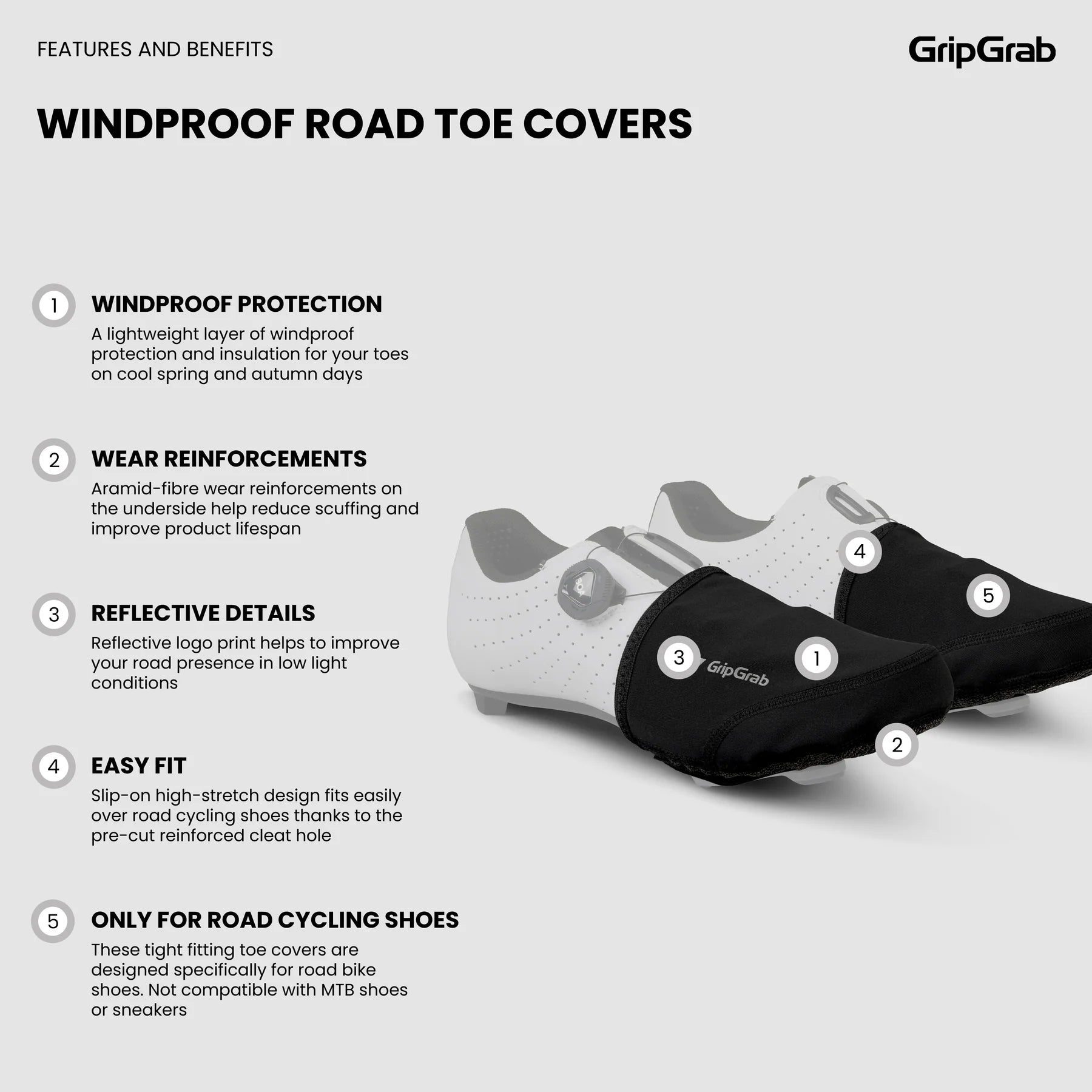 Návleky na prsty GRIPGRAB WINDPROOF jsou ideální pro silniční cyklistiku na jaře a na podzim. Snadno se nasazují, rychle se navléknou na boty a chrání nohy před větrem a deštěm.