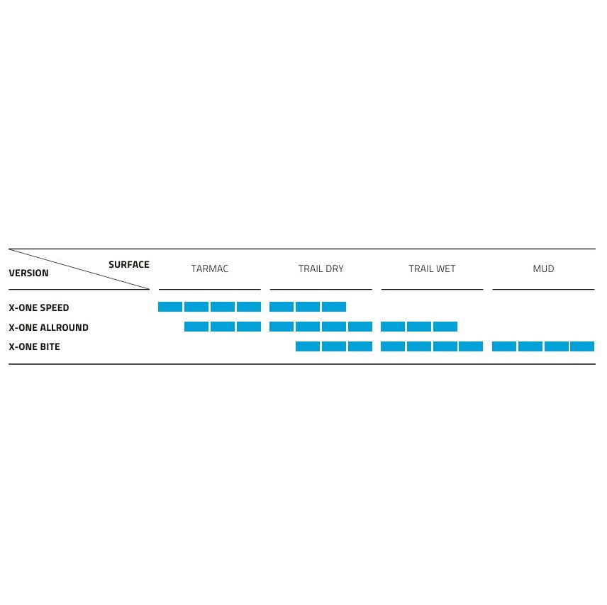 Je vybaven technologií Tubeless Easy a nabízí také veškerou odolnost proti průrazu díky technologii pláště V-Guard. Plášť X-One R poskytuje nejlepší výkon pro optimální zážitek z cyklokrosových závodů.