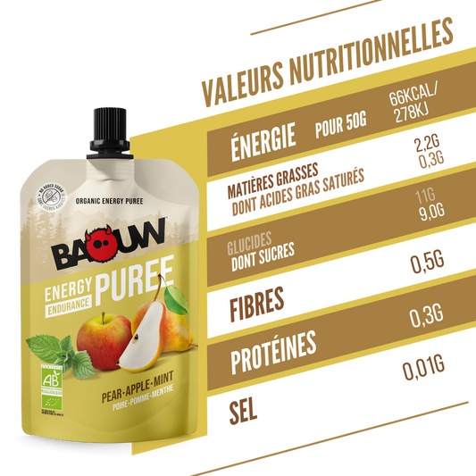 BAOUW Økologisk opskrift på frugtenergipuré pære/æble/mynte (90 g)