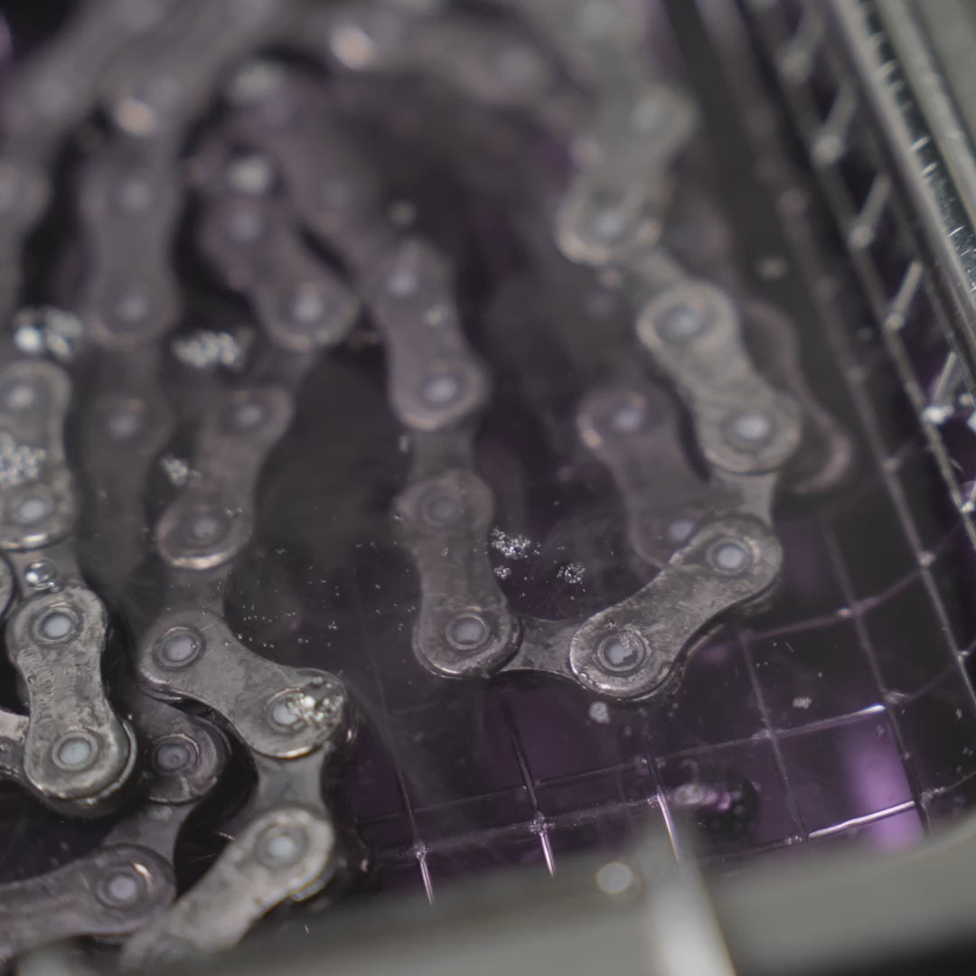 Idéal pour passer d’une lubrification à l’huile à la cire chaude, le Super Sonic prépare parfaitement la chaîne pour une adhérence optimale de la cire. Même les chaînes apparemment propres sont débarrassées de toutes traces cachées dans les axes et maillons.