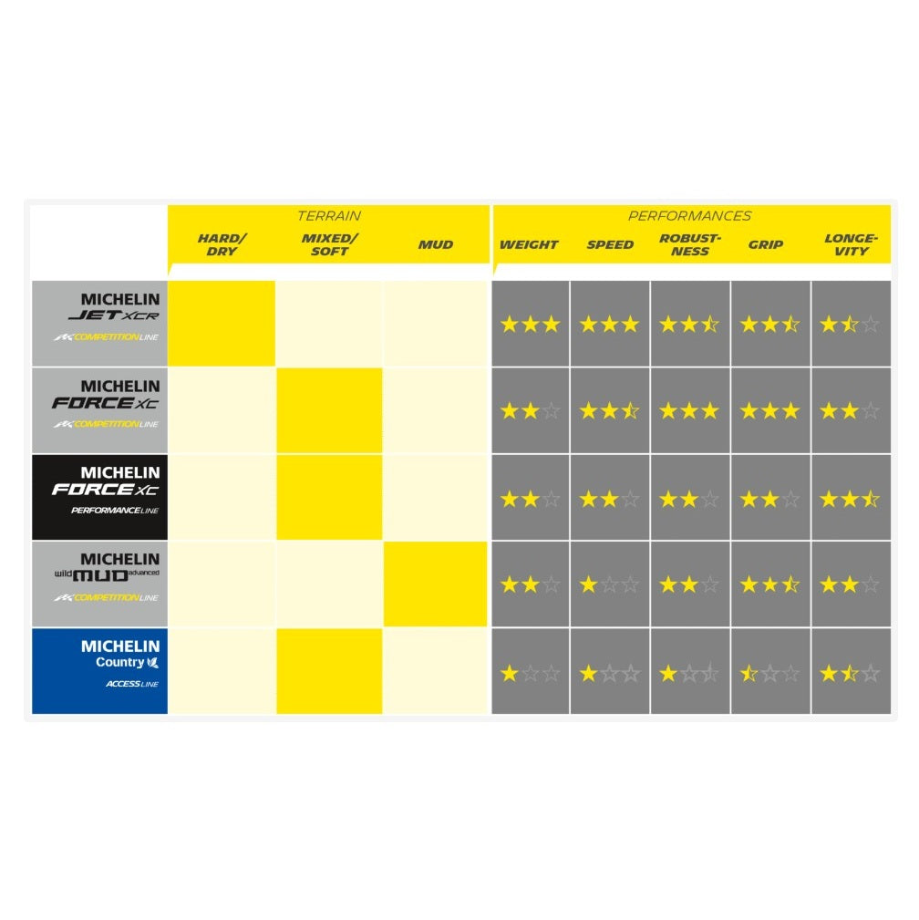 MICHELIN Force XC Performance Line 27.5x2.25-dækket er designet til langrendssport i hårdt og blandet terræn.