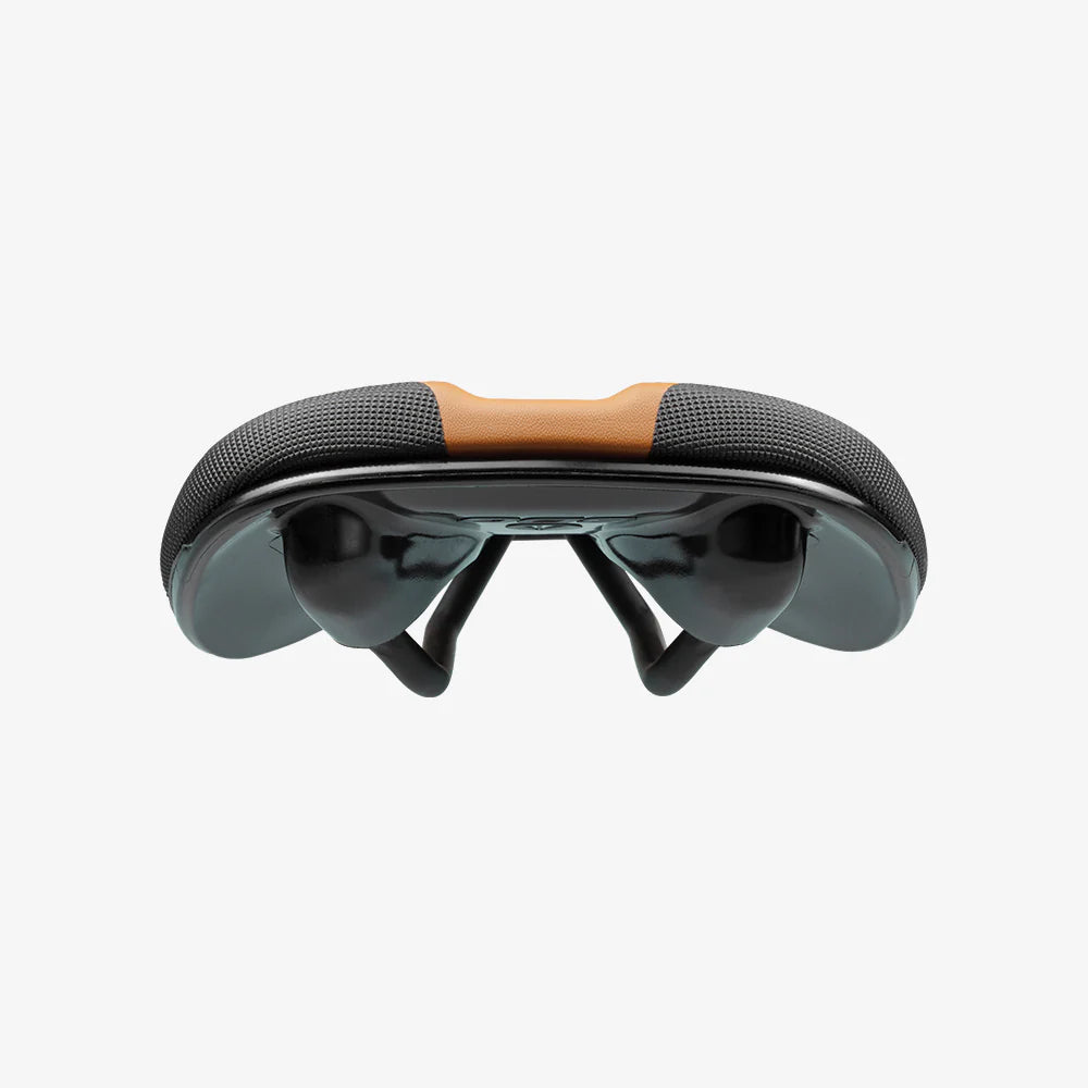 Med en let stigning bagtil optimerer den støtte og kraft i siddende stilling, ideelt til lange eventyr. Den er kortere for at passe til moderne geometrier og har slankere hofter, der bevarer den ikoniske komfort fra Bel-Air og samtidig giver et slankere design. Fleksible skinneindsatser og en skjult udskæring maksimerer komforten yderligere.
