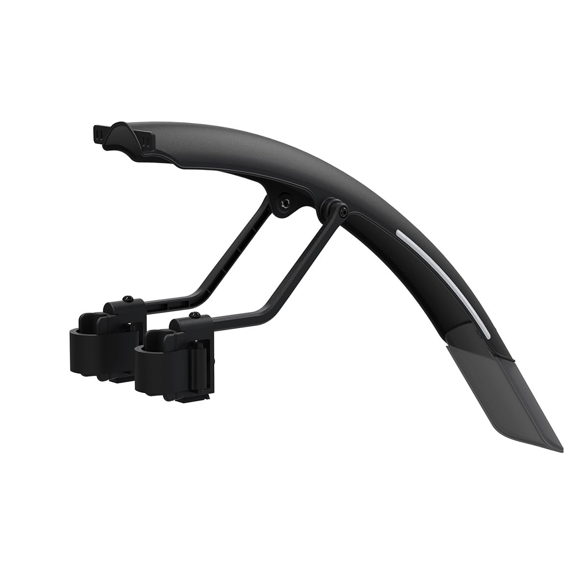 Regulowane wsporniki zapewniają ściślejsze dopasowanie do opony i doskonałą ochronę przed błotem i rozpryskami, a polerowany spód zapobiega gromadzeniu się brudu i ułatwia czyszczenie. Dołączone naklejki odblaskowe 3M zapewniają bezpieczeństwo w nocy".