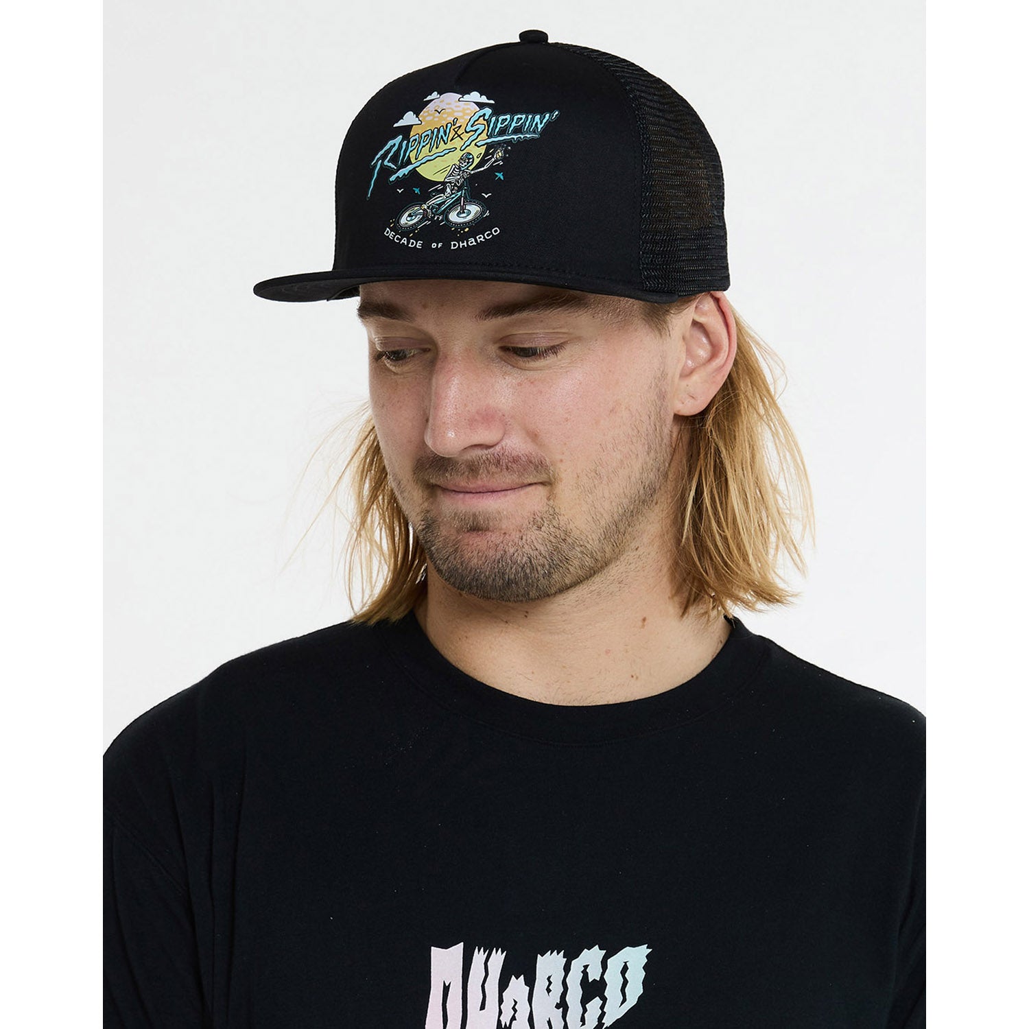 DHARCO FLAT BRIM TRUCKER RIPPIN AND SIPPIN Cap czarny