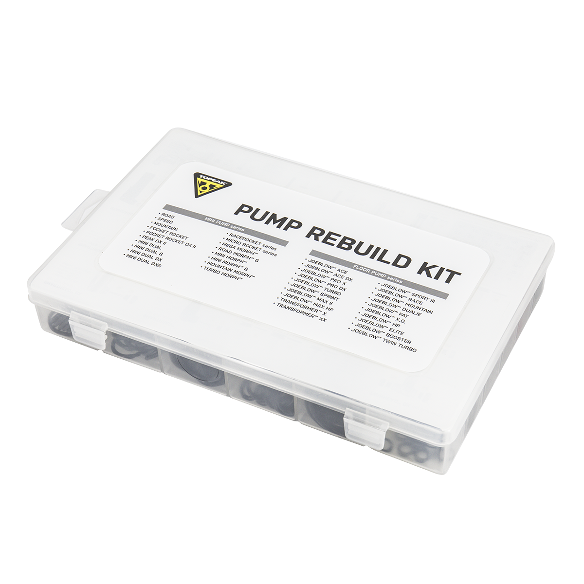 La Pump Rebuild Kit Box de TOPEAK est une solution d'organisation complète contenant toutes les pièces de rechange essentielles pour entretenir et réparer la célèbre gamme de pompes à pied JoeBlow. Fidèle à sa réputation de durabilité, Topeak propose ici un assortiment de joints, de têtes de pompes, de manomètres et de raccords.