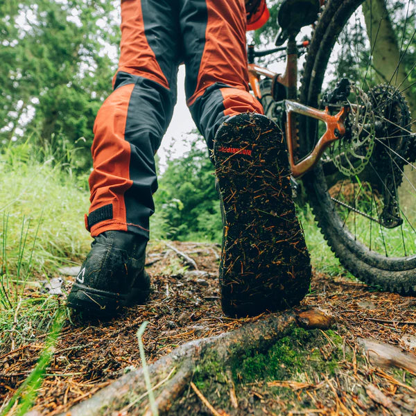 Côté performance, ces chaussures sont dotées du composé de caoutchouc RideGrip™ Pro, offrant une adhérence exceptionnelle. Plus souple que la version standard, ce matériau garantit une tenue optimale sur les pédales plates, même dans des conditions glissantes. La semelle WaffleGrip Pro, une version inversée de la WaffleGrip originale, maximise la traction, tant sur le vélo qu’en marchant, grâce à ses tiges courtes qui s’enfoncent profondément dans la semelle.