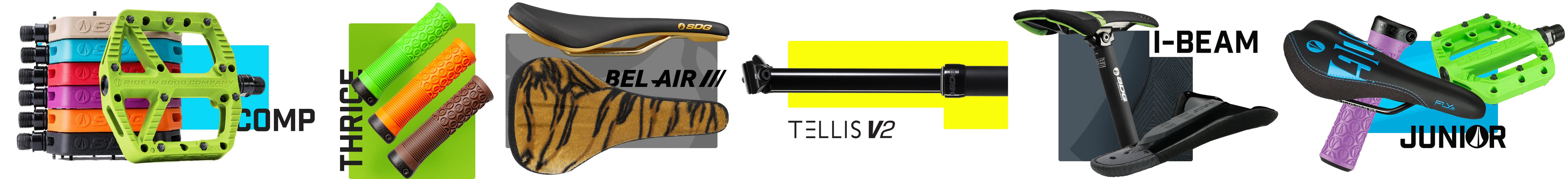 Probikeshop är stolta över att vara den exklusiva distributören av SDG komponenter och att kunna erbjuda hela sortimentet: teleskopiska sadlar, handtag, pedaler och sadelstolpar.