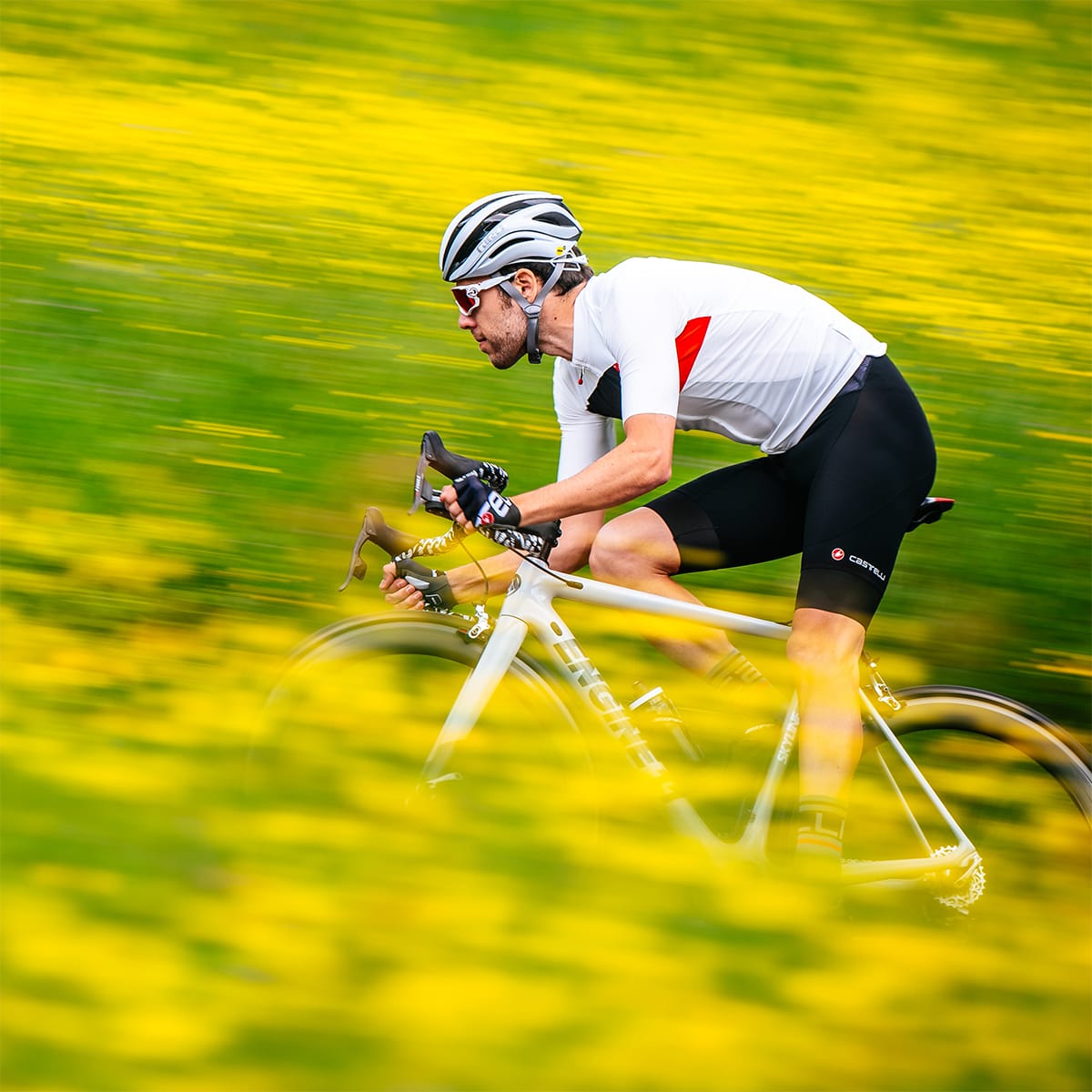 De är försedda med CASTELLIs mest bekväma Progetto X² Air-yttermaterial. Det består av ett sömlöst mikrofiberöverdrag som är ultra-andningsbart, mycket elastiskt och bakteriostatiskt, skumvaddering med varierande densitet och tjocklek samt viskösa kuddar under sittbensknölarna och under mellangården för att ge extra komfort i dessa känsliga områden.